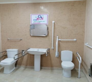 - تركيب مساند للذارع ثابتة و متحركة لـ التمكن من الحركة داخل المرحاض بنفسك.